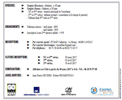 Les finales du tournoi auront lieu samedi 15 avril l'après midi. Peut-être Joseph sera-t-il toujours des nôtres.